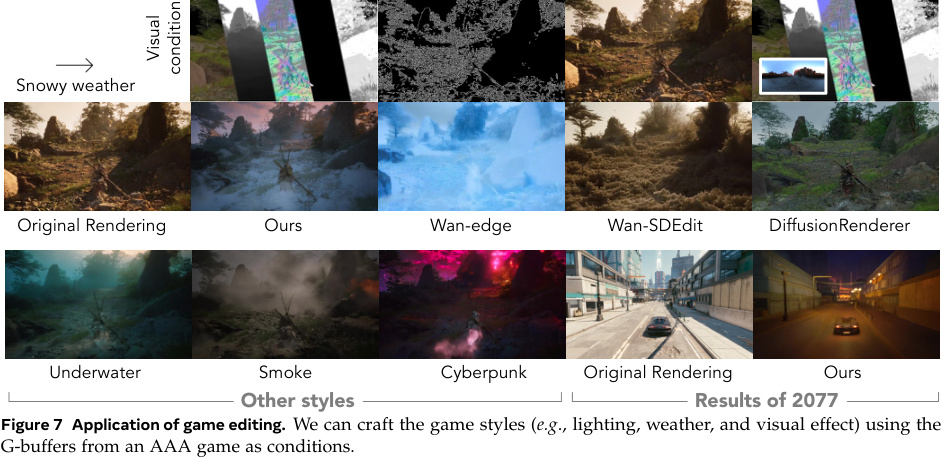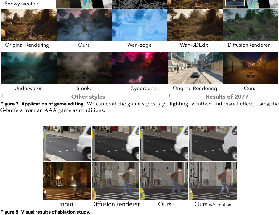 - Прямой рендеринг (Forward): Можно взять эти G-буферы и генерировать по ним новое видео, меняя стиль игры текстовым промптом («сделай готику», «добавь киберпанк»).